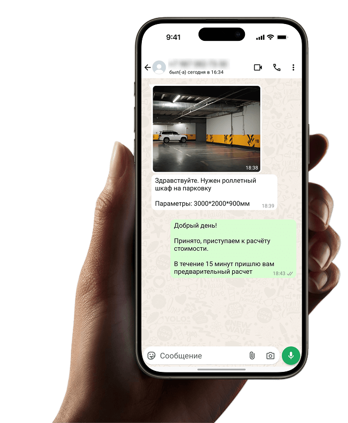 По телефону или в WhatsApp консультируем вас и рассчитываем предварительную стоимость шкафа по вашим замерам.